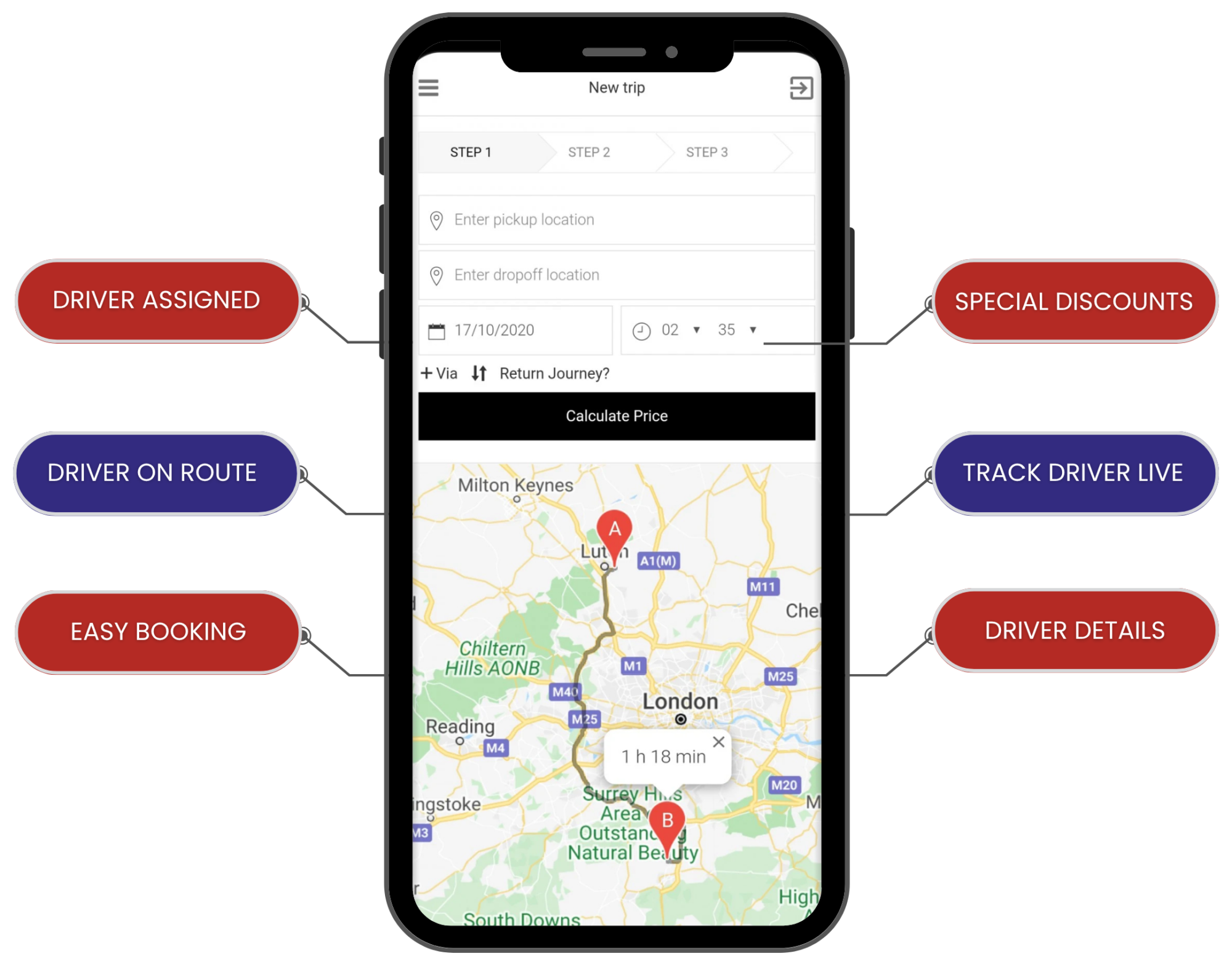 Watch your driver’s real-time location and arrival time with zero guesswork.